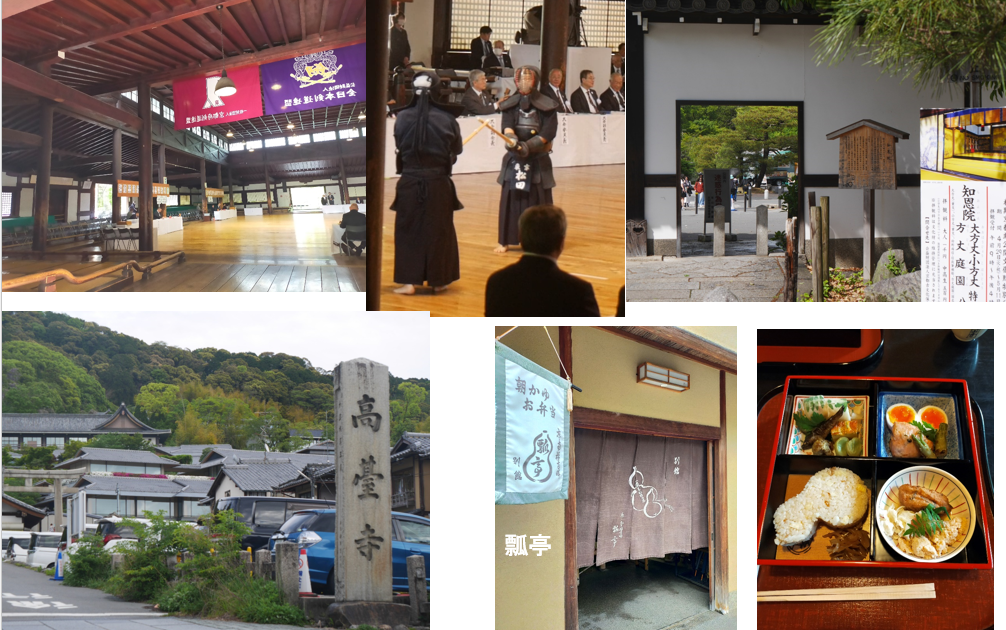 稽古も出来ずに、仲間や先生方の試合を見取り稽古に終始。それでも、着いた5月2日の昼には、平安神宮そばの定宿から、近くの瓢亭(400年の歴史ある)で昼食を取り、京都が初めての仲間もいたので、そのまま、清水寺まで、観光客であふれかえっている中をぶらぶらと散歩。私以外にも足の悪い人が居たので、置いてけぼりを食わずにゆっくりと歩いて助かった。